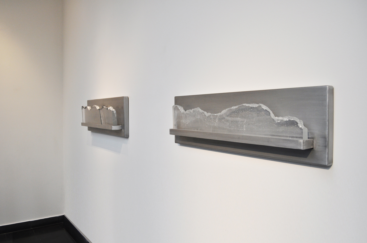 casting, verre moulé et poli, socles muraux en aluminium, 82 x 27 x 12 cm, 84 x 29 x 13 cm