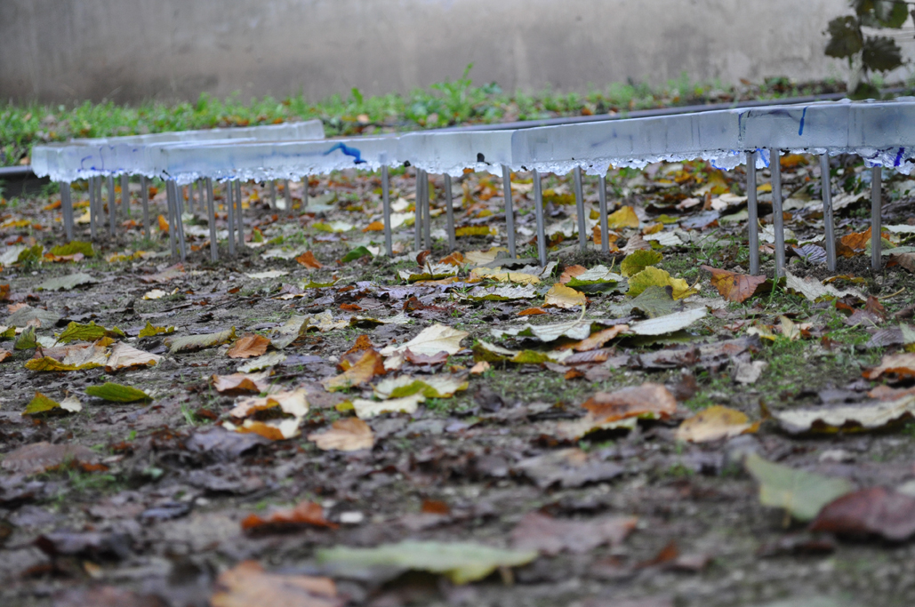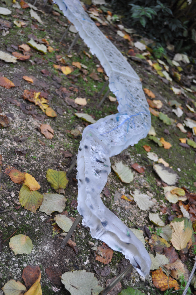 permanent sculpture in public space, Parco Rossa, San Vito Al Tagliamento, Italy glass casting, aluminium 500 x 35 x 40 cm