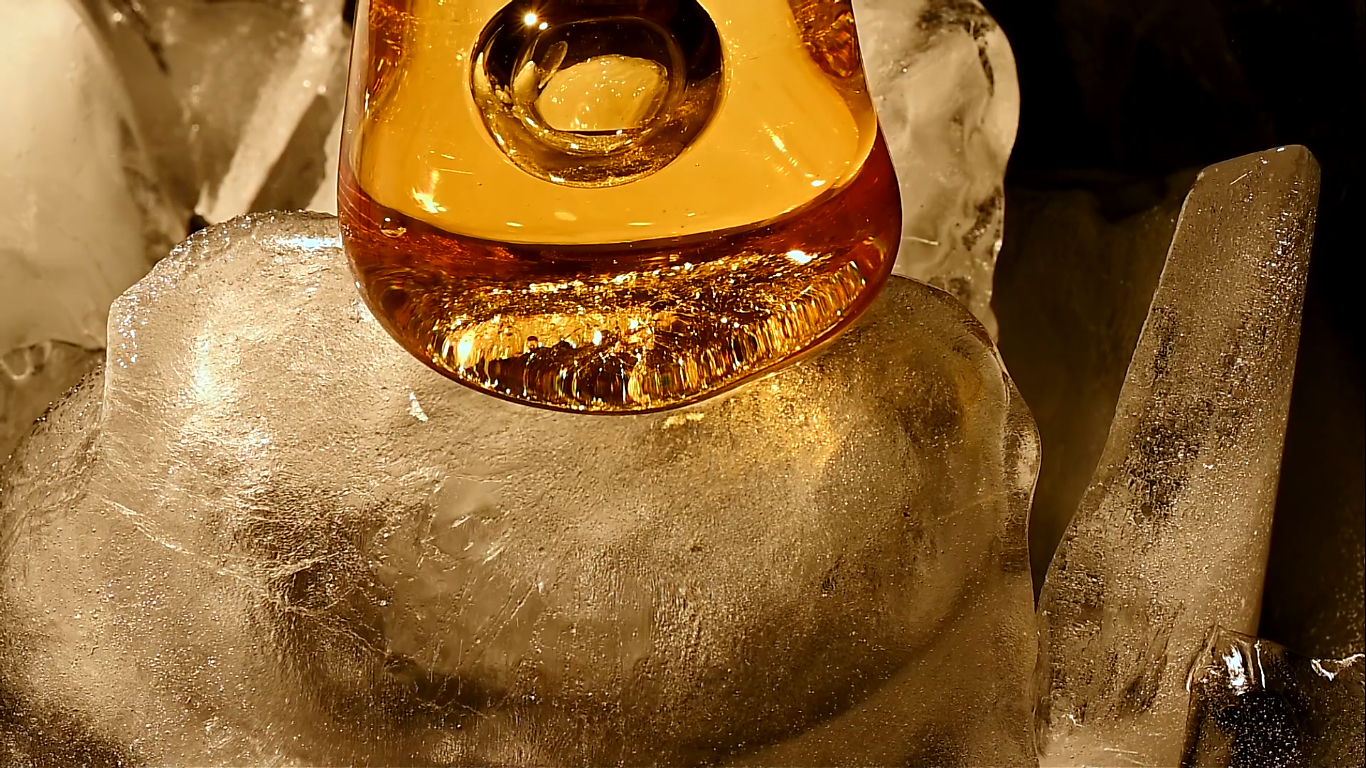 Stones moulding is used as a matrix to blow glass.The mold is in ice. It presents a set of ice rocks, arranged to form a frozen landscape. On contact with hot glass a thermal shock occurs of some 1000 degrees. The confrontation is spectacular, the glass bears its imprint, the telluric character of the rock. Materials respond to the limits of their capabilities. Image: Martyna Pawlak Sound: Etienne Caylou With the support of Martell Fondation