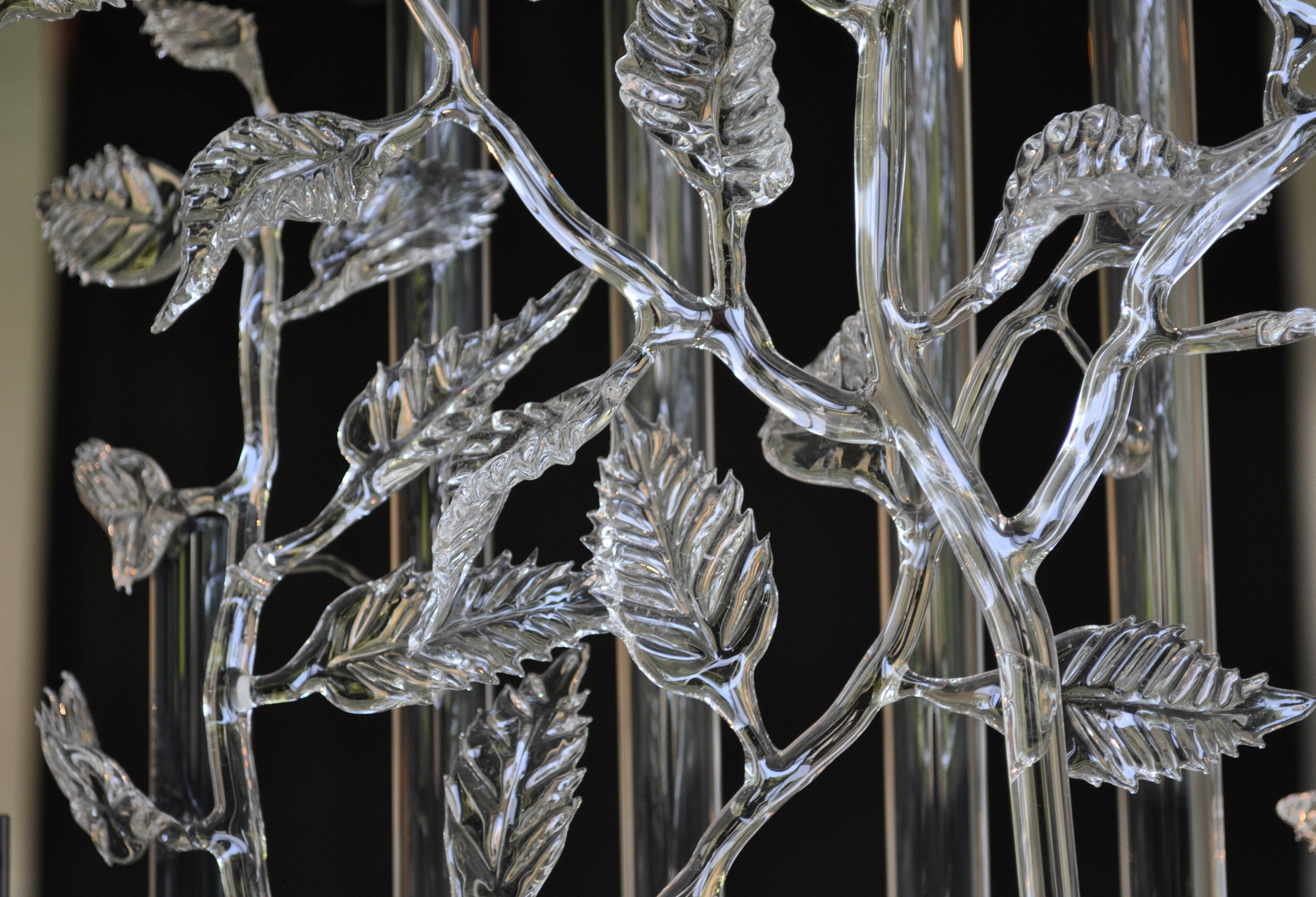 verre filé, tubes de verre, noir de fumée, socle en bois 256 x 155 x 32 cm